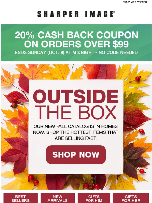 20% Off Sharper Image Coupons - Oct. '22 Coupon & Promotion Codes Expired Sharper Image coupon codes These probably won't work but give them a try! $10 OFF $10 Off Purchases Of $100 Or More. The Sharper Image is your source for stylish and functional personal hygiene products, household electronics, and home improvement. Shop asap and spend over $100 to receive $10 off your order! Sharper Image Coupon Code in October 2022 : r/GloriousOffers Sharper Image Coupon Code in October 2022 . Visit for Sharper Image Coupon Code in October 2022. This link provides a regularly updated list of coupons, promo codes and discount deals. comments sorted by Best Top New Controversial Q&A Add a Comment . More posts you may like. $10.00 for Sharper Image - Smartsense Shiatsu Realtouch Massaging Chair ... $10.00 for Sharper Image - Smartsense Shiatsu Realtouch Massaging Chair Pad - Grey (expiring on Monday, 10/10/2022). Offer available at BestBuy.com. Save Money on Groceries with Free Printable Coupons & Store Deal Lists At Coupon Mom! Sharper Image 2022 Fall Sales Coupons & Promo Codes Here's the offer - Sharper Image Fall Sales Coupons, Promo Codes, Deals & Sales - Huge Savings! 65% OFF. Sharper Image. Fall Sales Sale! Additional 65% Off Entire Purchase at Sharper Image. Expires in 3 months. Used 12 Times. View Sale. See Details. Get incredible offers at Sharper Image. No coupon code needed. Deals End: 2023-01-04.